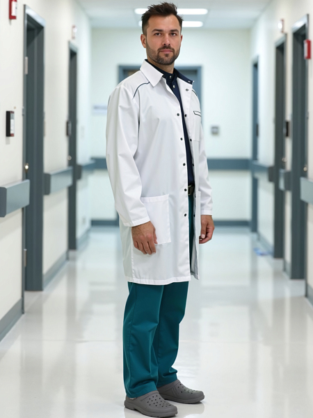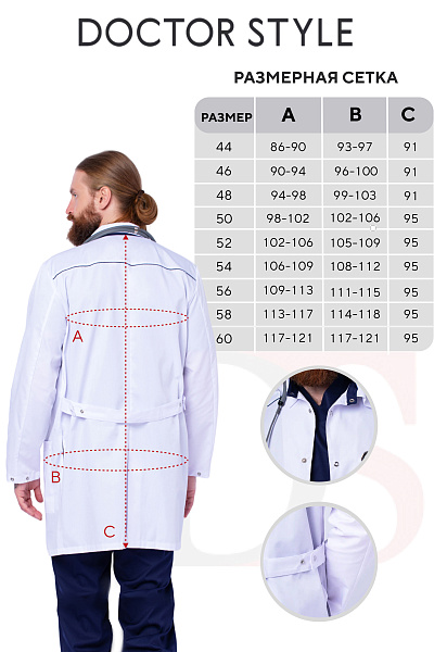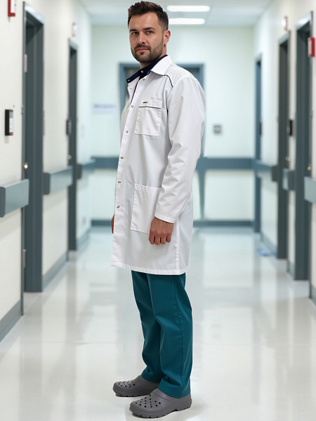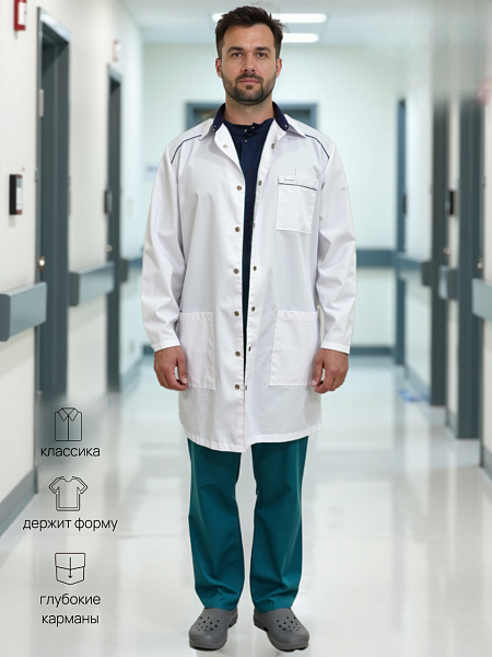 Медицинский халат мужской "Силуэт", белый/темно-синий