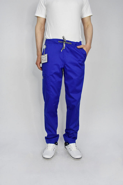 Медицинские брюки мужские "Комфорт М", василек (100% хлопок) SALE