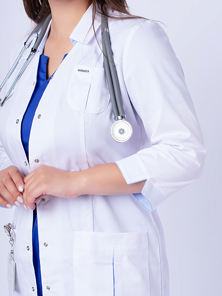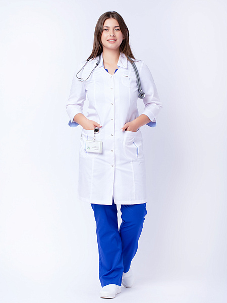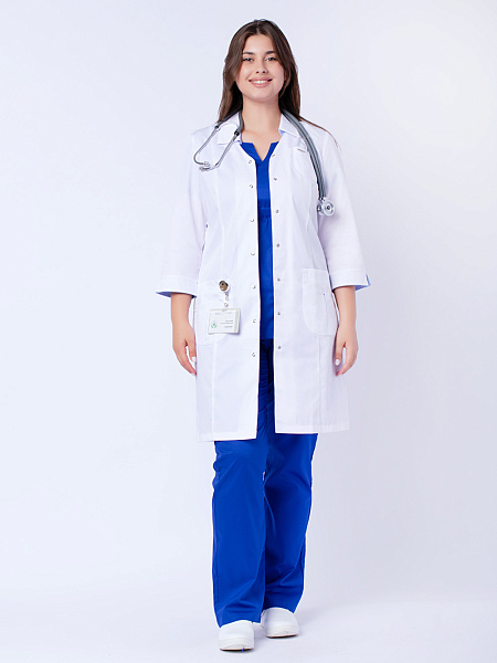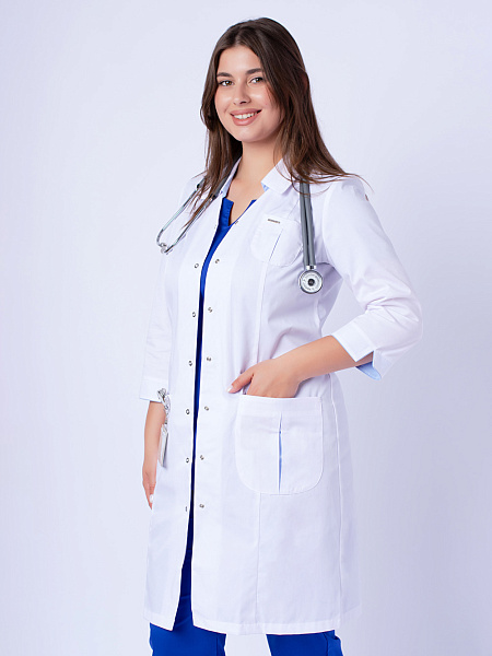 Медицинский халат женский "Соната", белый/голубой SALE