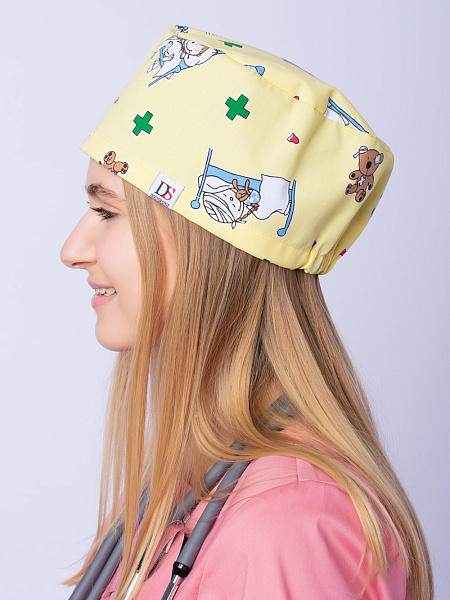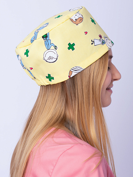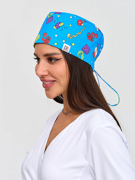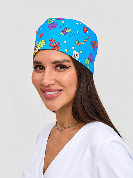 - Цвет. Женская медицинская шапочка, как и мужская, может быть разных оттенков белого, розового, красного, синего и так далее. Кроме того, предлагаются версии со всевозможными яркими принтами.